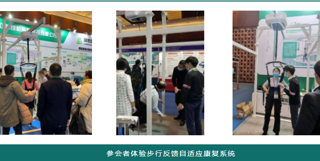 會議過程中,綠柏展位所展出的智能康復(fù)設(shè)備受到了眾多參會者的關(guān)注,尤其是步行反饋自適應(yīng)康復(fù)系統(tǒng),作為國內(nèi)唯一一款可實現(xiàn)實時動態(tài)減重和防跌倒安全保護(hù)的步行訓(xùn)練系統(tǒng),其吸引了一眾參會學(xué)者和專家前來體驗。